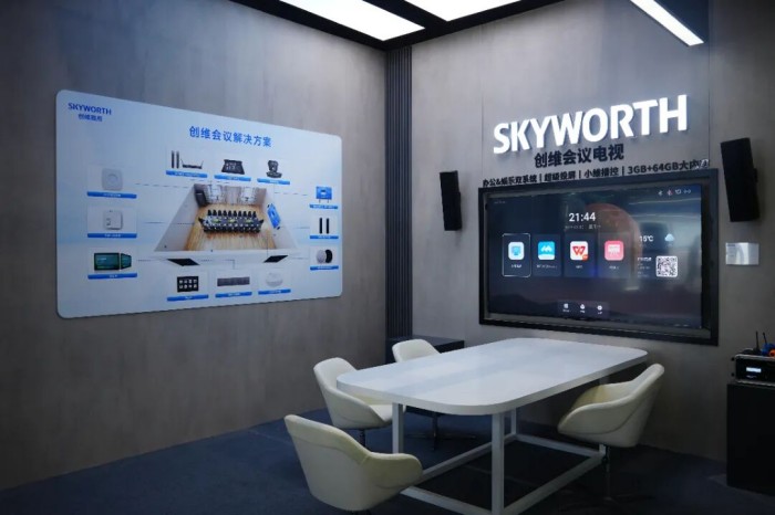 針對酒店商務會議需求,創(chuàng)維商用打造專業(yè)智慧會議解決方案,創(chuàng)維會議電視搭載辦公&娛樂雙系統(tǒng),商務洽談、休閑觀影一鍵切換,滿足酒店會議、賓客娛樂雙重需求;3GB+64GB超大內(nèi)存,運行流暢不卡頓,120Hz高刷模式一鍵開啟,畫面縱向絲滑流暢。超級投屏功能搭載私有投屏協(xié)議,支持多種投屏方式與鏡像反控,文件跨端傳輸輕松實現(xiàn);內(nèi)置小維播控系統(tǒng),語音即可控制會議流程,搭配高清顯示效果,讓會議溝通更高效。