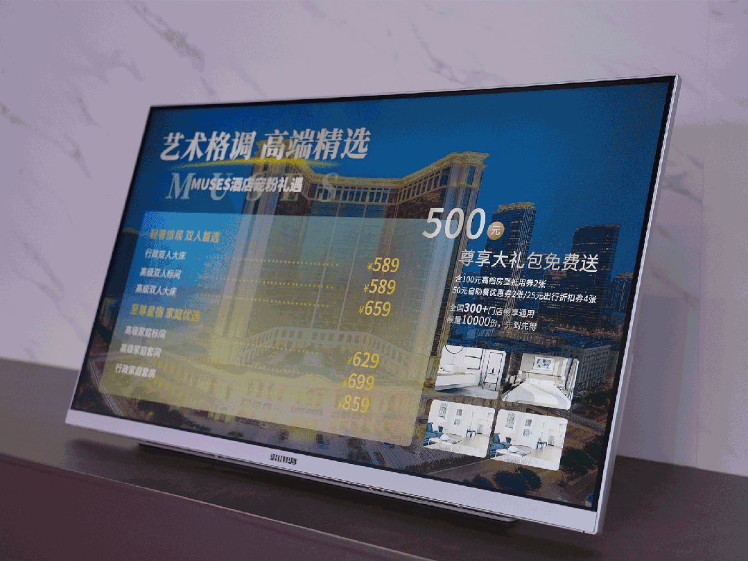 客房是酒店服務(wù)的核心。飛利浦商顯通過分級(jí)產(chǎn)品矩陣,深度賦能不同定位的住宿空間,讓客房真正成為智慧交互中心。