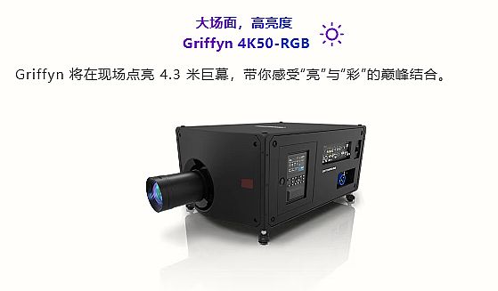 對于大型活動、戶外展演、投影映射、主題公園等大場景應(yīng)用,亮度與色域是衡量設(shè)備性能的核心指標(biāo)?埔旼riffyn 4K50‑RGB純激光投影機(jī),以行業(yè)頂尖的硬件配置,重新定義大場面顯示標(biāo)準(zhǔn)。展會現(xiàn)場,該機(jī)型將點亮4.3米巨型屏幕,以極致亮度與廣色域呈現(xiàn)震撼視聽效果,讓觀眾直觀感受“亮”與“彩”的巔峰融合。