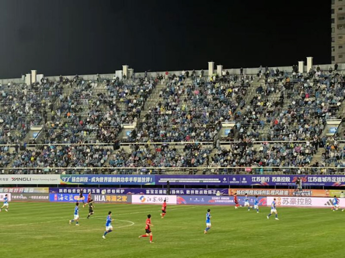 歷經(jīng)近200天的翹首以盼,揚(yáng)州隊(duì)終于重返主場(chǎng)——揚(yáng)州市體育公園體育場(chǎng),在此與蘇州隊(duì)展開賽季首輪焦點(diǎn)對(duì)決。隨著夜幕緩緩降臨,體育場(chǎng)內(nèi)燈光漸次亮起,看臺(tái)上球迷的吶喊聲、歡呼聲、加油聲浪此起彼伏,將綠茵場(chǎng)上的熱烈氛圍推向高潮;球員們?cè)趫?chǎng)上奮力奔跑、默契配合、精準(zhǔn)傳射,每一次搶斷、每一次射門都牽動(dòng)著全場(chǎng)觀眾的心。