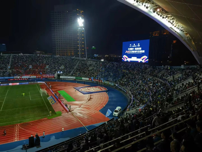 在揚(yáng)州賽區(qū),利亞德充分發(fā)揮其在體育場(chǎng)景中的深度適配能力與技術(shù)優(yōu)勢(shì),打造貼合蘇超賽事需求的視效解決方案。賽場(chǎng)上的LED大屏清晰呈現(xiàn)賽事畫面、球員動(dòng)態(tài)及相關(guān)信息,為現(xiàn)場(chǎng)數(shù)萬(wàn)球迷帶來了一場(chǎng)兼具科技感與觀賞性的視覺體驗(yàn)。