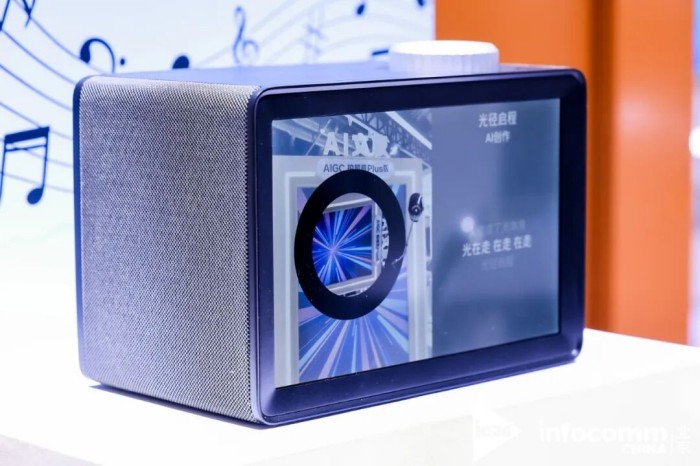 其中,AIGC拍照機Pro版專為文旅景區(qū)、商業(yè)綜合體及線下娛樂場景打造,用戶只需拍攝人臉照片,即可快速生成融合景區(qū)IP或品牌元素的藝術寫真,支持掃碼帶走及現(xiàn)場打印,成為年輕人打卡留念的互動利器。AI音幕Mini版則創(chuàng)新融合了AI智能作曲、音箱與高清顯示屏,不僅能播放音樂時顯示動態(tài)歌詞,還可AI一鍵作曲生成專屬BGM,為商業(yè)空間與家庭場景提供兼具氛圍感與實用性的音視頻智能解決方案。