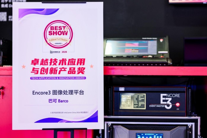 展會(huì)期間,巴可榮獲本屆InfoComm China 2026的“Best of Show”獎(jiǎng)項(xiàng)?闪⑾鞨ub模塊化無線視頻會(huì)議室系統(tǒng)、Encore3圖像處理平臺(tái)兩款重磅產(chǎn)品,憑借領(lǐng)先的技術(shù)應(yīng)用與創(chuàng)新性,一舉斬獲卓越技術(shù)應(yīng)用與創(chuàng)新產(chǎn)品獎(jiǎng)。