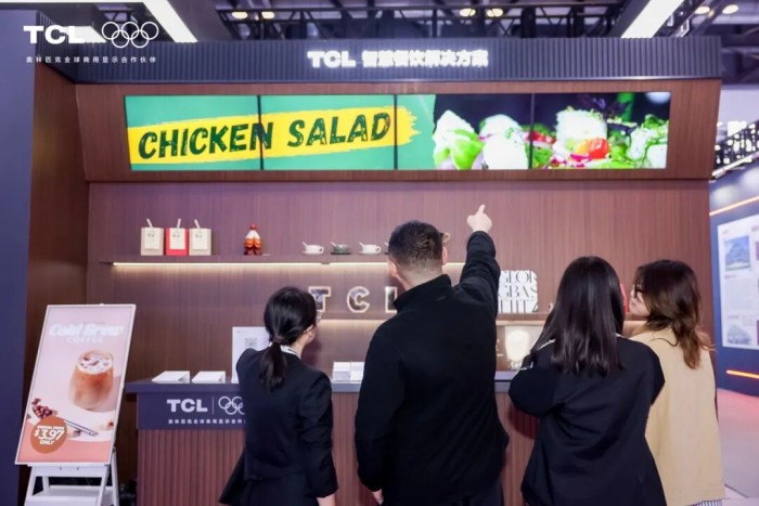 在智慧門店展區(qū),TCL則描繪了商業(yè)空間數(shù)字化升級的廣闊藍圖。該區(qū)域重點展示了TCL商用智屏P60與P30系列,尺寸覆蓋32至85英寸,為高端門店、智慧影院、智慧餐飲提供了定制化解決方案。
