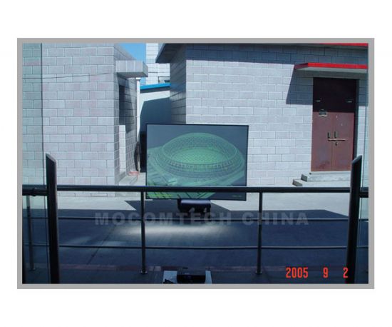 陽光直射摩科TM投影屏。但其顯示效果并為受到太大的影響。觀眾仍然可以收看到清晰的畫面顯示。摩科TM Hi-Power 103亮度增益為20Gain,使用2500ANSI投影機。