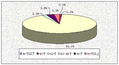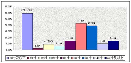 根據(jù)連續(xù)性的市場需求趨勢顯示,液晶電視需求尺寸除20寸以下的小屏幕液晶電視外,大尺寸屏幕液晶電視主要以32寸、37寸為主,需求比例都在20%左右。
