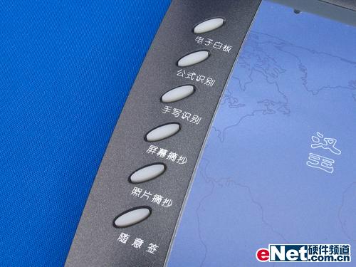 手寫輸入?yún)^(qū)的左側(cè)是功能按鍵區(qū),這里所有“漢王e粉筆”的特殊功能都羅列在此,方便用戶及時(shí)調(diào)用,同時(shí)整體上“漢王e粉筆”高度適中,并且非水平,有一定角度,手寫感覺很好,符合人體工學(xué)。