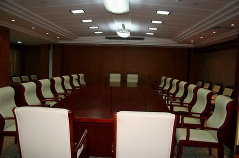 第二會(huì)議室裝修風(fēng)格與第一會(huì)議室略有不同,能夠接收來(lái)自一號(hào)會(huì)議室的各種信號(hào),并且留有輔助顯示設(shè)備----等離子的顯示接口。會(huì)議話筒數(shù)量為20支。