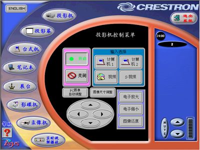 采用目前世界上檔次最高、技術(shù)最成熟、功能最齊全,用途最廣的美國(guó)CRESTRON(快思聰)中央控制系統(tǒng),實(shí)現(xiàn)多媒體電教室各種電子設(shè)備的集中控制。
