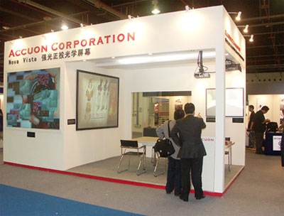 2006年4月12日-4月14日,代表目前中國(guó)大屏幕投影技術(shù)、會(huì)議系統(tǒng)、家庭影院等領(lǐng)域的規(guī)模最大、專業(yè)性最強(qiáng)和影響最深遠(yuǎn)的2006中國(guó)上海國(guó)際視聽(tīng)集成設(shè)備與技術(shù)展(IS China2006)在上海光大會(huì)展中心隆重舉行,Accuon Cooperation (美國(guó)艾恩光電)在中心二樓D05展位全力打造的“日光會(huì)議室”---Nova Vista強(qiáng)光正投光學(xué)屏幕,引來(lái)眾多同行及其他參觀者圍觀,剛開(kāi)始很多人還以為是100寸的等離子或者液晶!在聽(tīng)了工作人員的耐心講解后才恍然大悟,原來(lái)是一種全新屏幕技術(shù)產(chǎn)品---Nova Vista強(qiáng)光正投光學(xué)屏幕。