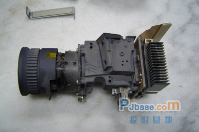 這是打開機身蓋以后看到的內(nèi)部情況,鏡頭及電源主板以及縫隙里都是厚厚的灰塵,看來這臺投影機已經(jīng)很久沒有“沐浴”過了。