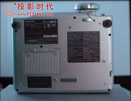 松下Panasonic PT-AE900(PT- AE900E)投影機(jī)背部采用三點(diǎn)式支撐,前置兩支點(diǎn)可調(diào)節(jié)高度,進(jìn)而調(diào)節(jié)投影機(jī)的投射角度。AE900也具有四顆供懸掛吊裝固定使用的固定螺絲。此外,在鏡頭部位松下AE900還專門增加了一個(gè)弧形突起保護(hù)支點(diǎn),以防止鏡頭的碰傷。