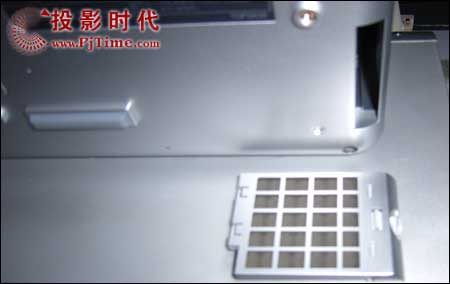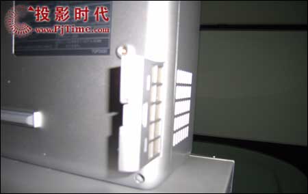 松下Panasonic PT-AE900(PT- AE900E)投影機(jī)側(cè)面板,右側(cè)為鎖孔,左側(cè)具有散熱通風(fēng)道。