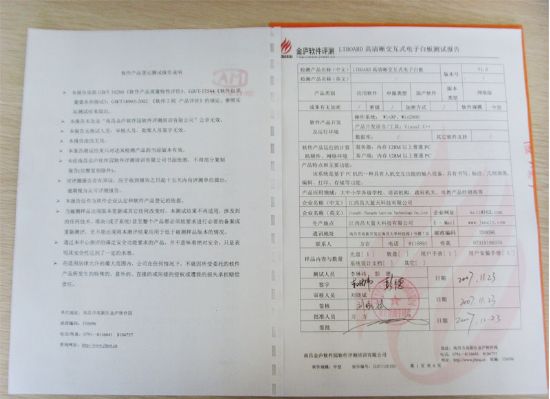 近日,南昌金廬軟件園軟件評(píng)測(cè)培訓(xùn)有限公司受我公司委托,根據(jù)GB/T-17544《軟件包質(zhì)量要求和測(cè)試》的規(guī)定,對(duì)我公司開發(fā)的LTBOARD高清晰交互式電子白板V1.0軟件進(jìn)行了軟件產(chǎn)品登記測(cè)試。登記測(cè)試結(jié)果表明:軟件可以正確安裝卸載:功能基本符合用戶手冊(cè)要求:測(cè)試期間系統(tǒng)運(yùn)行穩(wěn)定,安全可靠性基本符合要求;軟件界面比較規(guī)范,中文符合性較好:用戶手冊(cè)描述完整:已達(dá)到軟件登記測(cè)試規(guī)范的要求。