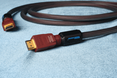 設(shè)計(jì):對于新一代數(shù)字音、視頻傳輸方式,雅堡十分重視,目前已推出不同等級的HDMI/DVI線材十余種,令用戶有了更大的選擇空間。本次測評的GY-HDMI線材為2米長度,采用了超純銅鍍銀材質(zhì),外覆多層屏蔽層,外觀則覆以紅色線網(wǎng),頗為美觀,工藝也精細(xì)考究。特別的是該線兩端接口后均套有磁環(huán),可以有效地過濾雜波,使訊號更純凈。