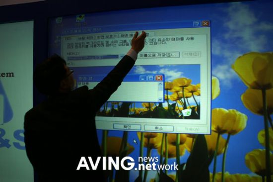 在韓國(guó)展出的120英寸超大觸摸屏