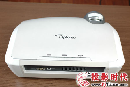 奧圖碼HD81家用投影機頂部圖,有Optoma標志,潔白的機身,顯得非常端莊與秀氣。