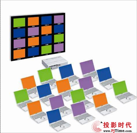 另一方面,無線投影機(jī) PT-PX770NT可以實現(xiàn)最多16臺電腦同時投影在一個畫面上,在歐美及日本,采用該技術(shù)的授課方式已經(jīng)普及,即方便教師授課亦增強(qiáng)了師生間的互動,提高學(xué)生上課的興趣。特別是采用無線投影技術(shù)的設(shè)計類院校,學(xué)生們把各自的作業(yè)同時投射在同一畫面上,大家可以更為直觀的看到所有同學(xué)的作業(yè)畫面,教師可以隨意切換其中一個畫面為全屏顯示并進(jìn)行點評,給老師的授課帶來前所未有的便利,摒棄了傳統(tǒng)的文件拷貝傳遞方式,提高授課效率,更利于學(xué)生集中注意力聽講,增強(qiáng)了學(xué)習(xí)的趣味性。同時老師可以在課桌間邊走邊講解,拉近了師生間的距離,提高授課質(zhì)量。搭載無線技術(shù)的投影機(jī)導(dǎo)入教育領(lǐng)域,無疑為教育用戶提供了一種全新的的授課方式。