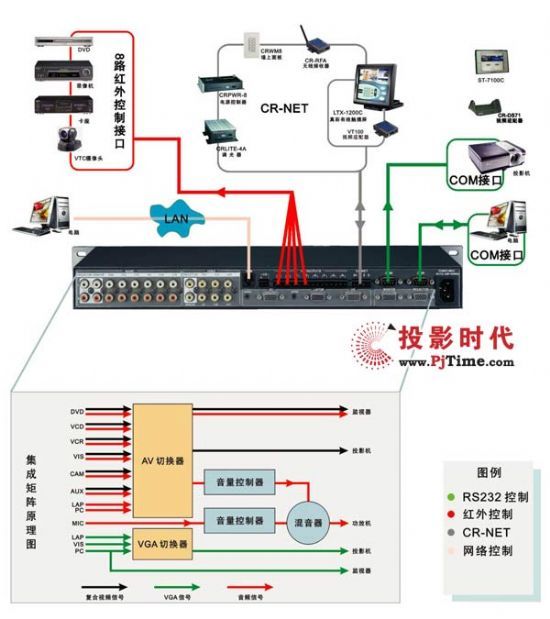 技術(shù)特色:高集成可編程的中控系統(tǒng)產(chǎn)品,不僅可以進(jìn)行AV/VGA信號(hào)切換,而且可以對(duì)多種控制端口編程。人性化的中/英文操作界面和交互式的控制結(jié)構(gòu),配備USB接口,可以高速方便地下載程序。