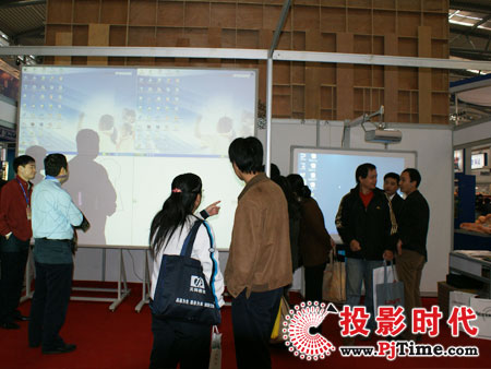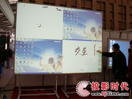 此次展會中巨龍攜帶的一款超大屏幕交互式電子白板最受關(guān)注。很多參觀者前來參觀都還進行實際體會。