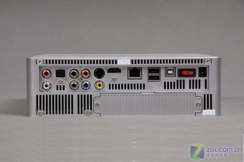 前面提到過這款產(chǎn)品配備了光纖音頻輸出接口,除此之外作為一款高清播放器特別是可以輸出1080p的產(chǎn)品HDMI的配備是必須的,另外分量色差、AV、S端子等常見的接口也有配置。為了實現(xiàn)連接PC和外接光驅的功能,機器背部還預留了兩組USB和網(wǎng)線接口。
