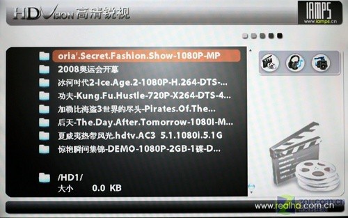 視頻播放方面,銳視HDVISION N1高清播放器最高可以支持1080p全高清格式,可以解碼MPEG1/2/4、H.264、XviD、VOB、DVD ISO格式的視頻,而且支持漢字字幕顯示。