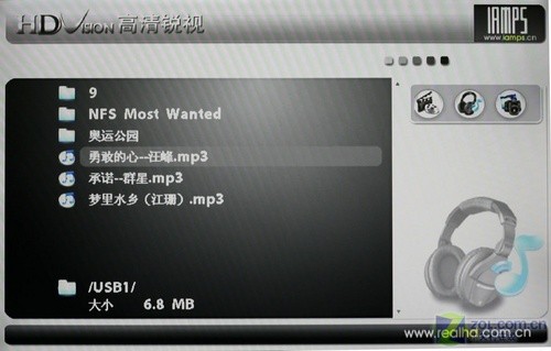 銳視HDVISION N1高清播放器的USB接口可以連接U盤等移動存儲設備播放,所以我們使用了U盤連接來測試圖片與聲音。插入U盤后機器馬上識別到了連接的U盤,在去讀資料部分稍顯遲緩,還有待加強。