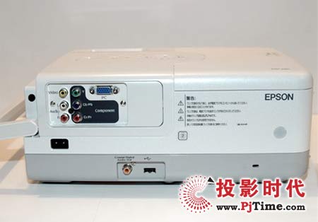 愛普生EMP-DM1投影機(jī)配置了豐富的輸入輸出接口,包括RGB輸入接口 、 AV 視訊端子、電源插孔與USB、同軸數(shù)字輸出。其中最特殊的該是機(jī)背還有USB與同軸數(shù)字輸出端子了。