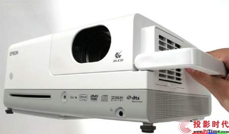 愛普生EMP-DM1投影機(jī)除了特別地內(nèi)建吸入式DVD播放機(jī)外,在外觀上也非常有特色,一是經(jīng)過特別設(shè)計(jì)的手提把柄,可以讓用戶隨時(shí)帶著走,當(dāng)朋友們外出旅游時(shí),帶上它會(huì)非常方便,同時(shí)讓您的旅游和野外Party別有一番滋味,另一個(gè)特點(diǎn)是該機(jī)配置了手動(dòng)滑蓋,可以有效防止灰塵傷害投影機(jī)鏡頭。