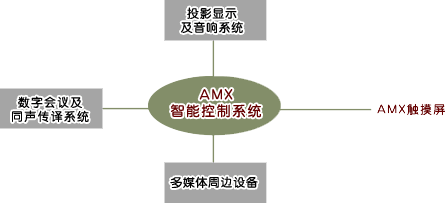 AMX智能集中控制系統(tǒng)來集中控制會議場所內(nèi)所有設(shè)備,包括各種子系統(tǒng)及各種設(shè)備電源的開關(guān)、現(xiàn)場燈光的調(diào)節(jié)、屏幕的升降、窗簾的開合、各種多媒體設(shè)備的操作等等。用戶只需在一個彩色觸摸屏上即可實現(xiàn)對所有系統(tǒng)設(shè)備的控制操作。