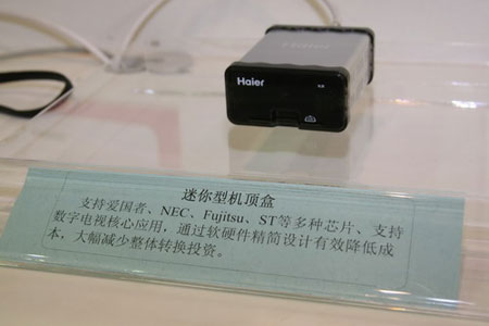 2008年第十六屆中國國際廣播電視信息網(wǎng)絡(luò)展覽會(CCBN)即將在3月21-23日隆重開幕。在去年舉辦的第十五屆CCBN上,各廠商展示了其在各自領(lǐng)域內(nèi)的最新技術(shù)產(chǎn)品。圖為迷你機(jī)頂盒