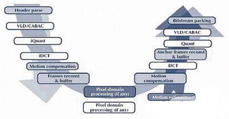 身為數(shù)字家庭網(wǎng)絡核心位置的STB,除了提供電視節(jié)目的視頻轉(zhuǎn)換播放之外,目前也成為家庭中如DVD、PMP、數(shù)碼相機等各種不同設備的互連中心。為了讓視頻內(nèi)容能在不同設備間進行播放及存取,STB還得具有視頻編碼轉(zhuǎn)換的能力,也就是調(diào)整位元速率以符合特殊的通道速率或儲存格式;或是用來改變分辨率,如將高分辨率(HD)視頻串流傳送給標準分辨率(SD)電視,或是在CIF移動終端上顯示SD視頻等。