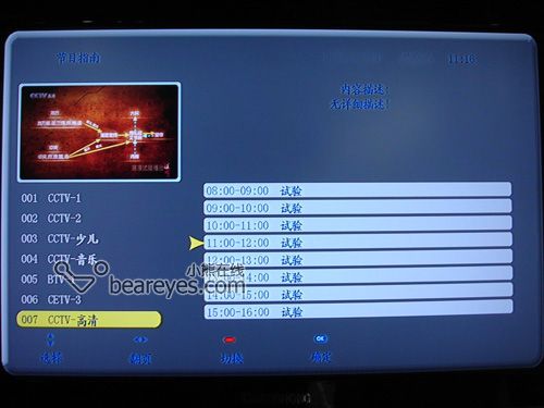 電視節(jié)目和數(shù)字廣播操作畫面,數(shù)字信號除了畫面更清晰外,數(shù)字化控制也極大方便用戶使用。只需用遙控器簡單的按幾下,大部分操作都能完成。從節(jié)目選擇到節(jié)目預(yù)定,都可以自行設(shè)定。