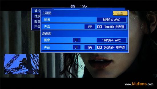這個顯示可不同于其他碟機單純的信息顯示功能,松下的碟機還能在這里進行音軌、副畫面音軌、字幕等切換工作,所以說當你想要領略Picture-in-Picture畫中畫功能的時候,再到這里調(diào)整副畫面一切設置吧。