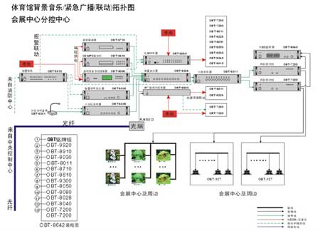 體育館背景音樂(lè)/緊急廣播拓?fù)鋱D-會(huì)展中心分控中心