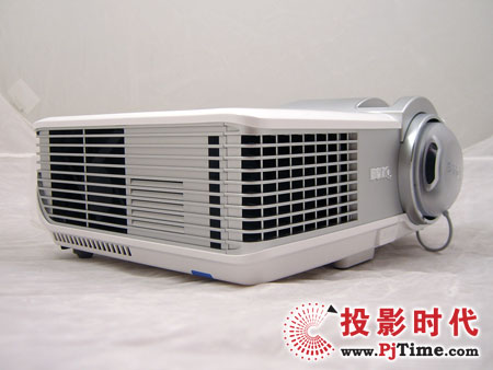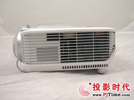 明基MP512ST投影機(jī)前部的出風(fēng)口的縱向分隔采用斜向設(shè)計,可以起到改變出風(fēng)風(fēng)向的作用。