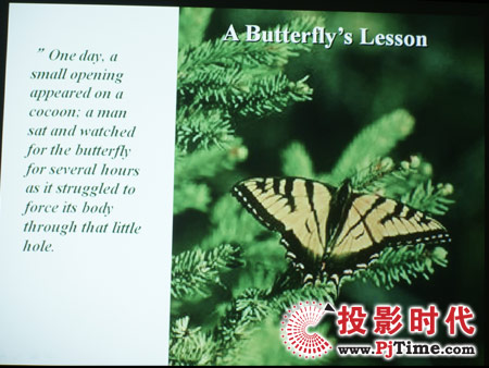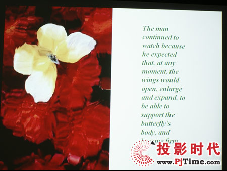 同時在幻燈片測試中,MP512ST效果非常優(yōu)秀。尤其是其明亮的色調(diào)風(fēng)格,能夠給人愉悅的視覺感受,并使畫面的文字顯示非常清晰細(xì)膩,在豐富色彩圖片的陪襯下,MP512ST能夠給使用者展示出出色的幻燈演示效果。