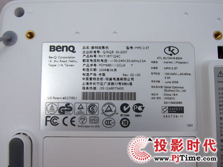 MP512ST投影機(jī)的型號雖然被設(shè)計在了機(jī)身上,但是位置非常隱蔽:如果不注意觀察誰會發(fā)現(xiàn)在鏡頭右下方的這個小標(biāo)簽?zāi)兀?/P>