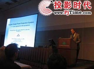 會議期間,蘇州巨視光電有限公司向人們展示的具有創(chuàng)新概念的新一代便攜式微型投影儀樣機(jī),引起了包括蘋果在內(nèi)的眾多世界級投影生產(chǎn)廠商的關(guān)注,取得了不錯反響。該項目已與愛普生及飛利浦簽訂了合作備忘錄,項目的進(jìn)一步洽談?wù)诜e極進(jìn)行當(dāng)中。下圖為本次會議上,蘇州巨視光電有限公司副總經(jīng)理副James Lupino先生向同行介紹巨視的新一代便攜式微型投影機(jī)技術(shù)。