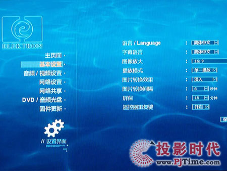 語言有簡(jiǎn)體中文和英文;字幕語言設(shè)置:多國語言字幕;圖像放大:標(biāo)準(zhǔn)/16:9/全屏.播放模式:?jiǎn)我徊シ、單一重?fù)、全部重復(fù)等多種模式選擇;圖片轉(zhuǎn)換效果:多種轉(zhuǎn)換選擇;圖片轉(zhuǎn)換間隔以及屏保等有多種時(shí)間選擇。
