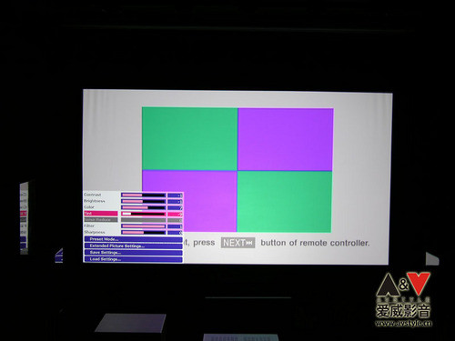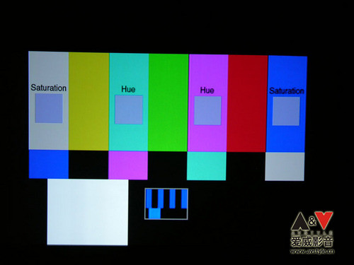 與“Video Essentials”不同的是,“Avia”的SMPTE色塊圖上有四個(gè)會(huì)閃爍的方塊,這四個(gè)閃爍方塊用意在于增加調(diào)整的精確度。當(dāng)您透過(guò)紅綠藍(lán)濾片看SMPTE色塊圖時(shí),如果還能清楚的看到方塊在閃爍,就表示還沒有調(diào)到最佳狀態(tài)。一定要調(diào)到肉眼感覺不到方塊在閃爍,那才是最正確的位置。假若您的顯像器輕易就能調(diào)到方塊看不到閃爍的地步,就表示顯像器在色彩方面的準(zhǔn)確度很高。反之,如果無(wú)論怎么調(diào)都看得到方塊在閃爍,那就有問(wèn)題了。