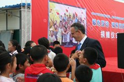 “感謝SMART技術(shù)公司的無(wú)償援助,感謝所有關(guān)心、支援我們?yōu)膮^(qū)校區(qū)重建的企業(yè)和社會(huì)團(tuán)體,謝謝你們。地震震得跨我們的校舍,但卻奪不走我們重建家園的信心。在未來(lái)1-2年時(shí)間內(nèi),師生們將不得不在臨時(shí)校舍里度過(guò),但我們將在德陽(yáng)重建一所嶄新的東汽中學(xué)。此次SMART技術(shù)公司捐助的交互式白板,為我校創(chuàng)建多媒體教室添磚加瓦,相信它的到來(lái)能讓災(zāi)區(qū)的孩子們更好的學(xué)習(xí)各項(xiàng)知識(shí)和技能,為重建家園打下扎實(shí)的基礎(chǔ)!本栀(zèng)儀式上,東汽中學(xué)校長(zhǎng)周德祥代表受捐學(xué)校用最簡(jiǎn)潔、樸實(shí)的語(yǔ)言表達(dá)了全體災(zāi)區(qū)師生們的心聲。