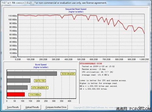 而通過HD Tach的測試表明,AGESTAR硬盤座在eSATA接口下的平均讀取速度也達(dá)到了101.6MB/s,而CPU占用率也降到了4%。