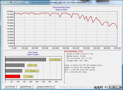 而通過HD Tach的測試表明,AGESTAR硬盤座在USB接口下的平均讀取速度也達(dá)到了102.7MB/s,而CPU占用率僅占用了3%。