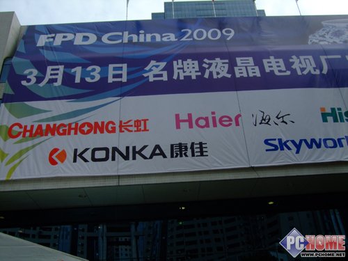 圖為展覽會(huì)外巨大的FPD China 2009格外引人矚目