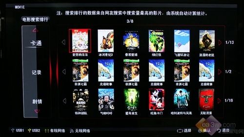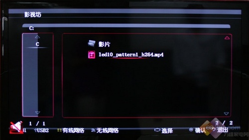 點(diǎn)擊遙控器上的“網(wǎng)絡(luò)/USB”按鍵,可以進(jìn)入康佳LC55TS88EN液晶電視多媒體功能操作界面?导袻C55TS88EN液晶電視將最新的網(wǎng)絡(luò)播放功能和此前就擁有的USB多媒體播放功能整合到了一起,比如通過(guò)“影視坊”既可以下載網(wǎng)絡(luò)影片,也可以觀看USB存儲(chǔ)設(shè)備中的影片。