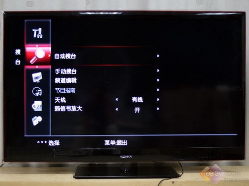 作為數(shù)字電視一體機(jī),康佳LC55TS88EN液晶電視搜臺(tái)菜單增加了對(duì)天線的選擇,還擁有弱信號(hào)放大功能,在觀看數(shù)字高清電視節(jié)目時(shí),還可以查看節(jié)目菜單。