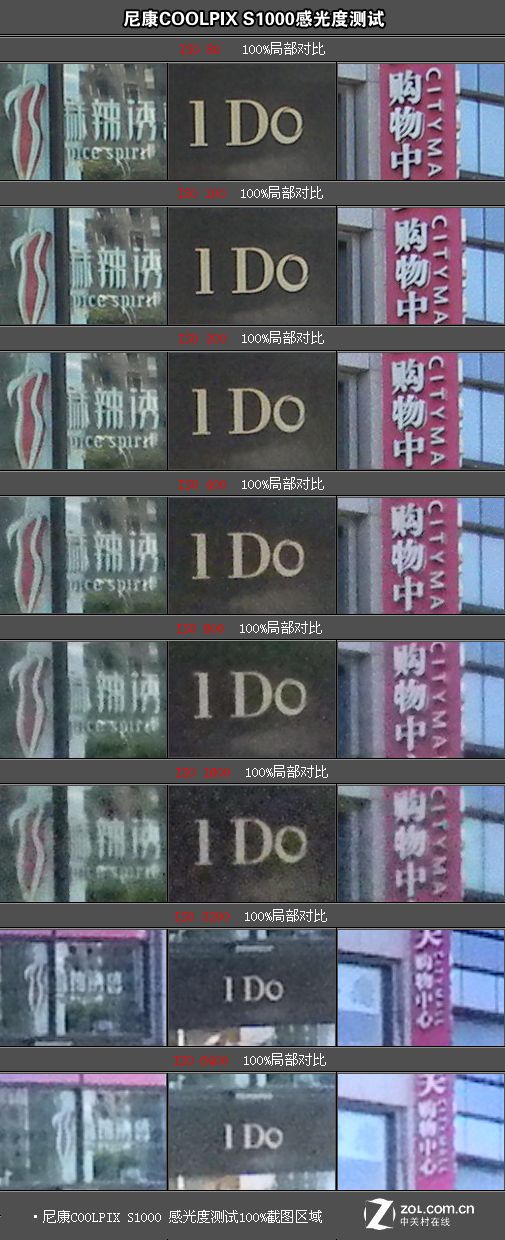 圖為:尼康S1000pj感光度測(cè)試截圖區(qū)域