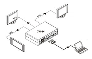 圖3通過DVI分配器實(shí)現(xiàn)1對多連接圖