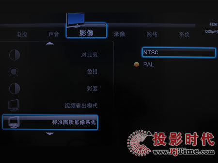 影像菜單可以調(diào)整屏幕比例、亮度、對比度、色相、彩度、視頻輸出模式、標(biāo)準(zhǔn)畫質(zhì)影像系統(tǒng)等常規(guī)設(shè)定。